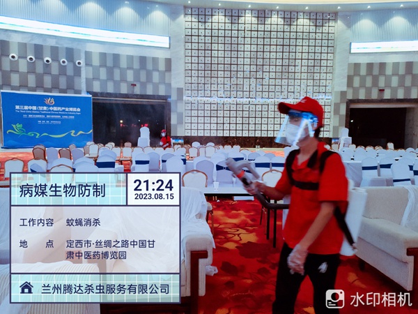 第四届中国(甘肃)中医药产业博览会!腾达杀虫,消杀保障服务中,为营造无蚊无蝇的环境全力以赴,预祝会议圆满成功